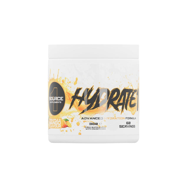 HYDRATE1 by 1 Source Supplements was formulated to offer complete hydration, cellular health and wellbeing to better every day activities and optimise performance in & out of the gym, whether you're a fighter, athlete or powerlifter, this is the one for you. Each tub contains 60 servings. 1 full 6g (7g for peach) serving offers- 2000mg Taurine: this ingredient is osmotic which means it can draw water into the cells aiding recovery and function. it can also retain potassium, magnesium which can help with hydration, can also alleviate muscle cramps, greater for the bigger guys. 1000mg Potassium citrate: this electrolyte helps with balancing fluid levels, potassium can alleviate lots of issues such as osteoporosis, blood pressure etc. its a crucial mineral to help with muscle contractions and nerve signals. 500mg Pink himalayan salt: Pink rock salt contains a solid amount of sodium chloride and other minerals albeit trace, that can help with hydration and electrolyte balance to help with contractions as well as performance. 500mg magnesium citrate: this mineral can play a positive role in mood, blood pressure & sugar levels! A great addition to supplement as alot are deficient and will help sleep too. 500mg watermelon extract: watermelon helps alot with antioxidant effects and cellular hydration as well as improving heart health and lowering blood pressure.  250mg Vitamin C: this essential vitamin, helps with 100s of actions in the body but is most commonly known for being a powerful antioxidant and keeping our immune system strong. 250mg tri-calcium phosphate: this mineral is essential to ensuring nerve signals, muscle contractions and bone density. Phosphate is also an electrolyte which also further supports hydration as well as calcium. 100mg Spectra®: this ingredient has been proven to support cellular function, reduce free radicals by stimulating antioxidant effects. It is a potent trademarked blend of 29 fruit/veg/herb extracts. Directions for use; To ensure optimal hydration for performance & general health, 1 serving upon waking is normally best for most. However, you could also use during or pre/post to either ensure hydration for performance or help replenish any minerals lost. Mix 1 scoop with approx 4-500ml. Do not exceed 2 servings a day. Warning: Food supplements should not be used as a substitute for a varied, balanced diet. Not recommended for use by anyone under 18 years of age. Consult your doctor prior to use if you are taking any medication or suffer from any pre-existing medical conditions. Spectra® is a registered trademark of VDF FutureCeuticals Inc.