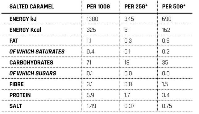 Carbohydrate: 19g / 76g (Of which Sugars: 0.1g / 0.2g)