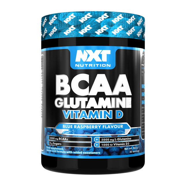 NXT Nutritionβs BCAA, Glutamine & D3 fomula works enhance muscle protein synthesis and improve recovery times with a straightforward inclusion of 5 grams of BCAAs per serving & 5 grams of Glutamine to be taken throughout the course of the day to achieve these goals.