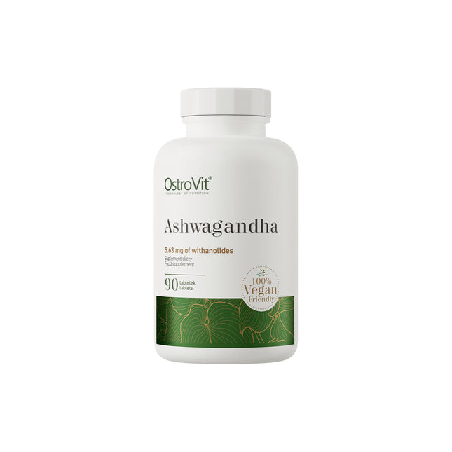 OstroVit Ashwagandha VEGE is a high-quality dietary supplement that contains ashwagandha root extract standardized to 1,5% withanolides DER 6:1. It is a vegan preparation, available in the form of easy-to-swallow tablets, created for people who want to supplement their daily diet with valuable compounds. Contains ashwagandha root extract standardized to 1,5% withanolides DER 6:1 - One serving of the dietary supplement provides the body with 375 mg of extract. Suitable for vegetarians and vegans - The product does not contain ingredients of animal origin. 1 serving = 1 tablet. Efficiency - The package of the product contains 90 servings of the preparation, which is enough for three months of regular supplementation. Convenient form - The preparation is available in the form of easy-to-swallow tablets and ensures trouble-free supply of the dietary supplement. Ashwagandha root extract - extract from the root of a plant belonging to the nightshade family, also known as ashwagandha or Indian ginseng. Ashwagandha root is characterized by intense smell and a wealth of valuable substances - it is primarily a source of withanolides, the content of which is standardized, extract from the plant used in OstroVit preparation.