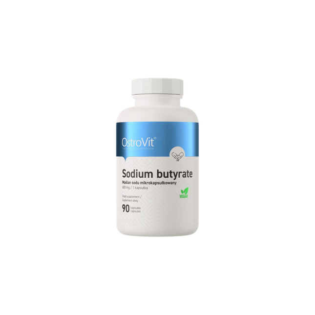 Butyric acid, also known as butanoic acid, is an organic chemical compound - a short-chain, saturated fatty acid, which in the human body is formed naturally during the fermentation of undigested carbohydrates. The production of butyric acid in the human body is mainly due to the consumption of resistant starch, but other compounds such as inulin, lactose or polyols are also important. Butyric acid can also be found in food - the main source of the compound is fresh milk, as well as dairy products and silage, however, the amount of the ingredient in food is very limited. Providing butyric acid to the body from the outside does not bring the desired results, because the compound is digested in the upper parts of the digestive system, even before reaching the intestines. Therefore, the OstroVit supplement contains sodium butyrate in the form of a microcapsule, which allows the active substance to reach the small and large intestines, and positively affects the quality and effectiveness of the preparation. Source of sodium butyrate - one serving of the dietary supplement provides the body with 600 mg of sodium butyrate, which contains 30% butyric acid. 1 serving = 1 capsule. Efficiency - the product package contains 90 servings of the preparation. Convenient form - the preparation available in the form of easy-to-swallow enteral microcapsules ensures a trouble-free supply of a dietary supplement. Suitable for vegetarians and vegans - the product does not contain ingredients of animal origin.