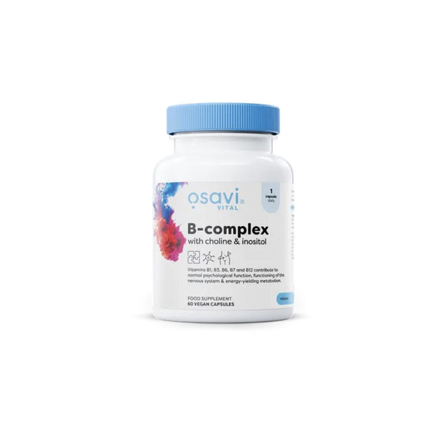 The essential B vitamins are vitamins B1, B2, B3, B5, B6, B7, B9 and B12. Together, they contribute to your normal psychologicalfunctions, nervoussystem and metabolism. These are all critical processes within your body which help to keep you feeling fit and well. They can also reduce the feelings of tiredness and fatigue. And weakness is one of the symptoms of deficiency in B vitamins too. Additionally, choline and inositol take part in lipid metabolism. If you think you’re not getting enough of these nutrients through your diet alone, you can choose a food supplement to help you top up. A B-complex supplement is an effective way to achieve your daily intake.