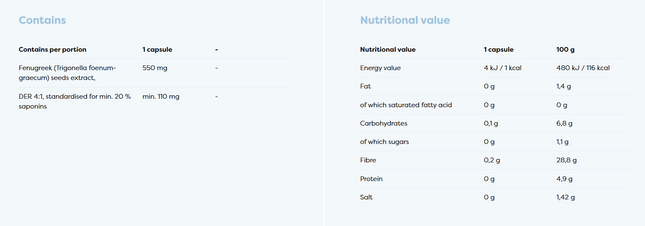 Food supplement in the form of a hard capsule containing standardised fenugreek seeds extract, which helps to maintain a normal blood glucose level.