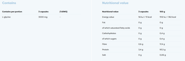 Food supplement in the form of a hard capsule containing L-glycine, an endogenic amino acid, that acts as a neurotransmitter and is an essential component for synthesis of proteins, e.g. collagen.