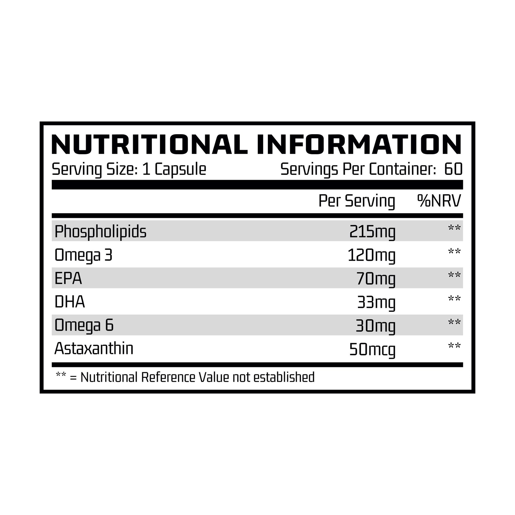 Ingredients: Phospholipids, Omega 3, EPA, DHA, Omega 6, Astaxanthin