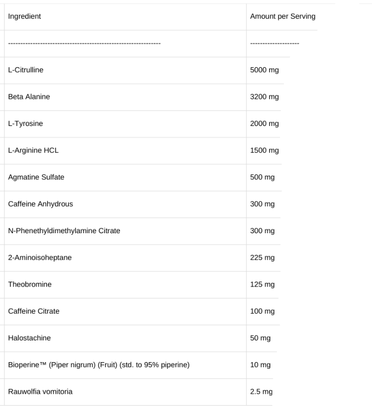 N-Phenethyldimethylamine Citrate (Eria Jarensis) A powerful mood-boosting and energising compound that enhances dopamine and noradrenaline activity. Expect enhanced euphoria, motivation, and mental drive from this next-gen stimulant. 2-Aminoisoheptane (2-amino) A potent stimulant delivering a strong, clean surge of energy and heightened focus. It’s ideal for high-stress, high-volume training when you must zone in and push through plateaus. Theobromine is A smooth, mood-elevating stimulant found in cocoa that supports blood flow and energy without overstimulation. It helps extend the effects of caffeine while improving endurance and mental clarity. Caffeine Citrate: A faster-acting form of caffeine that kicks in more rapidly than standard caffeine anhydrous. It delivers an instant energy hit and pairs perfectly with slower-releasing stimulants for long-lasting intensity. Halostachine is a rare stimulant with beta-adrenergic activity, boosting energy and thermogenesis. It contributes to Legit Pre’s hardcore edge by enhancing focus and elevating the fight-or-flight response. Bioperine™ (Black Pepper Extract) Enhances the bioavailability of all other ingredients, ensuring faster absorption and increased efficacy. It also provides mild thermogenic effects to support fat oxidation during training. Rauwolfia vomitoria is an intense alpha-receptor antagonist that promotes fat loss, mood elevation, and central nervous system stimulation. It delivers a final jolt of focus and power, making this formula LEGIT.