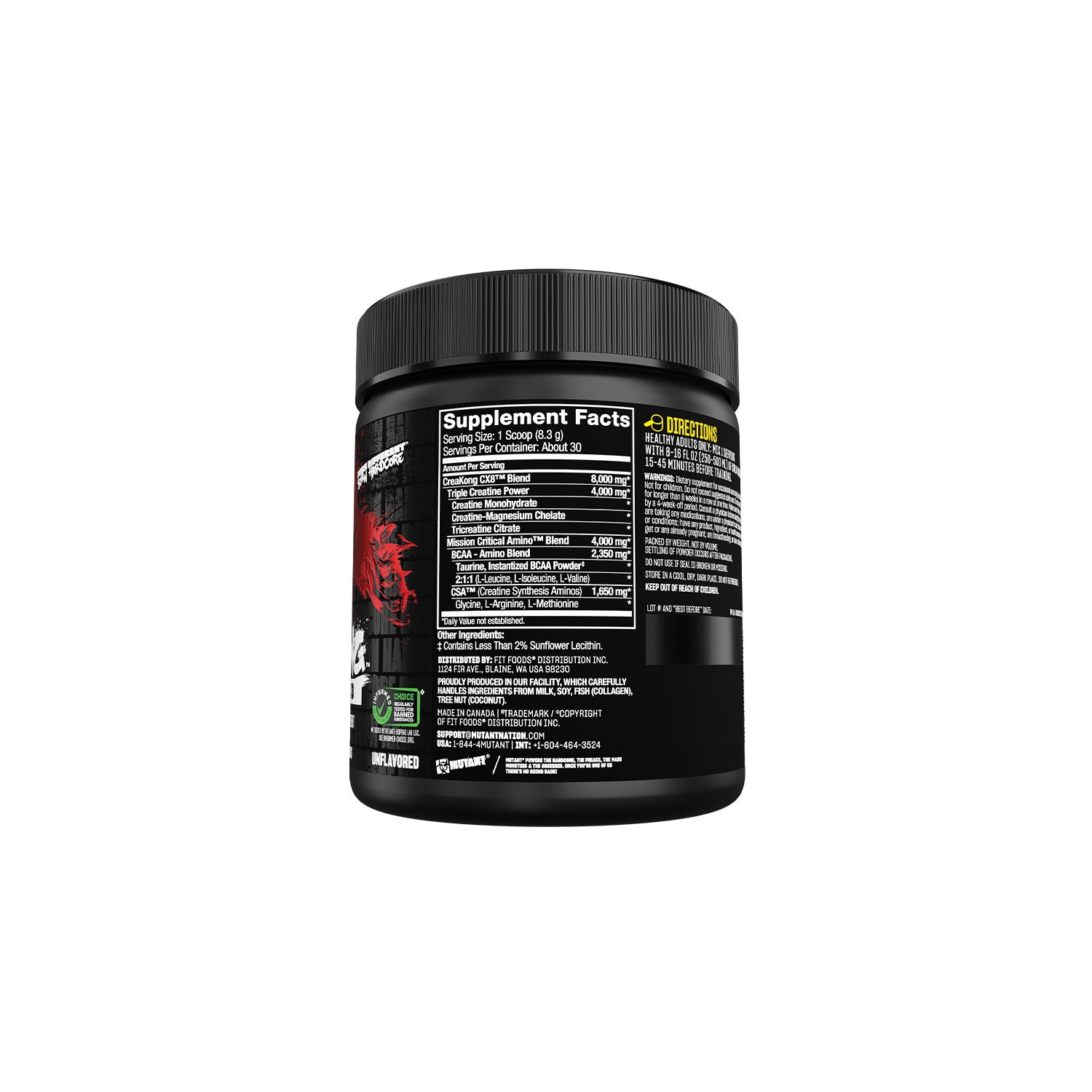 Ingredients: CreaKong CX8 Blend, Creatine Monohydrate, Creatine Magnesium Chelate, Tricreatine Citrate, Mission Critical Amino Blend, BCAA - Amino Blend, Creatine Synthesis Aminos