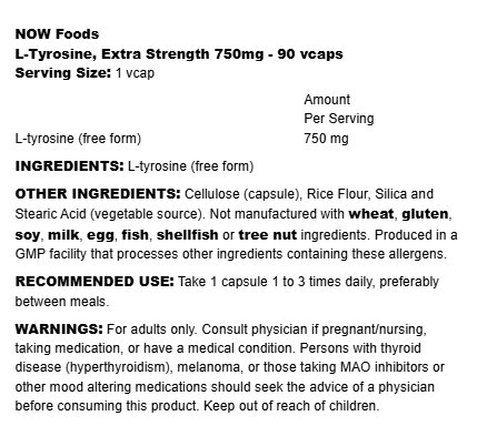 NOW Foods L-Tyrosine Extra Strength 750mg 90 Caps