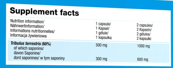 Ingredients: Tribulus terrestris fruit extract, Bulking agent, Anti-caking agent
