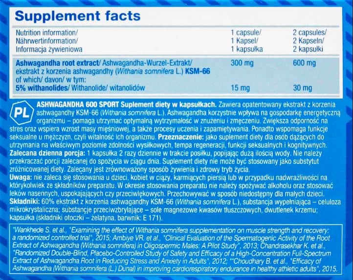 Ingredients: Ashwagandha Root Extract, 5% withanolides