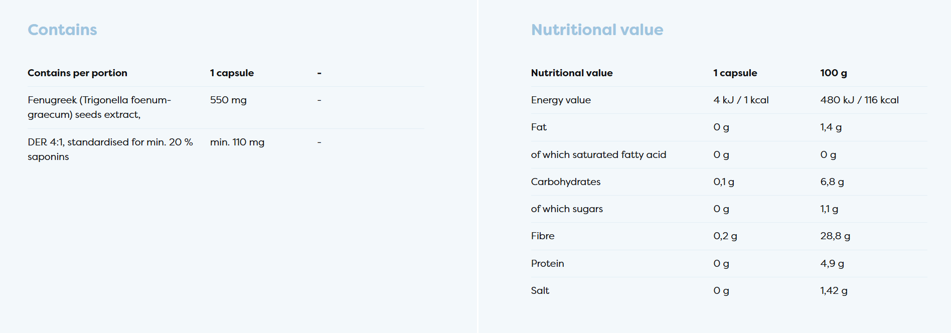 Ingredients: Fenugreek seed extract, Inulin, Shell