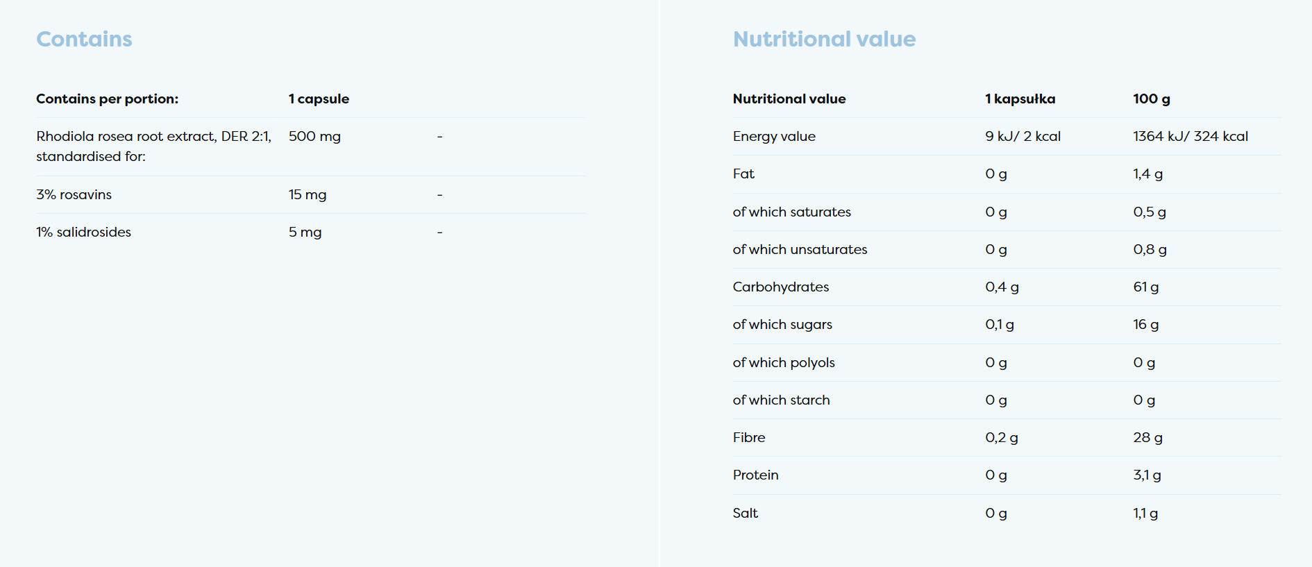 Ingredients: Rhodiola, Rosea Root Extract, Inulin