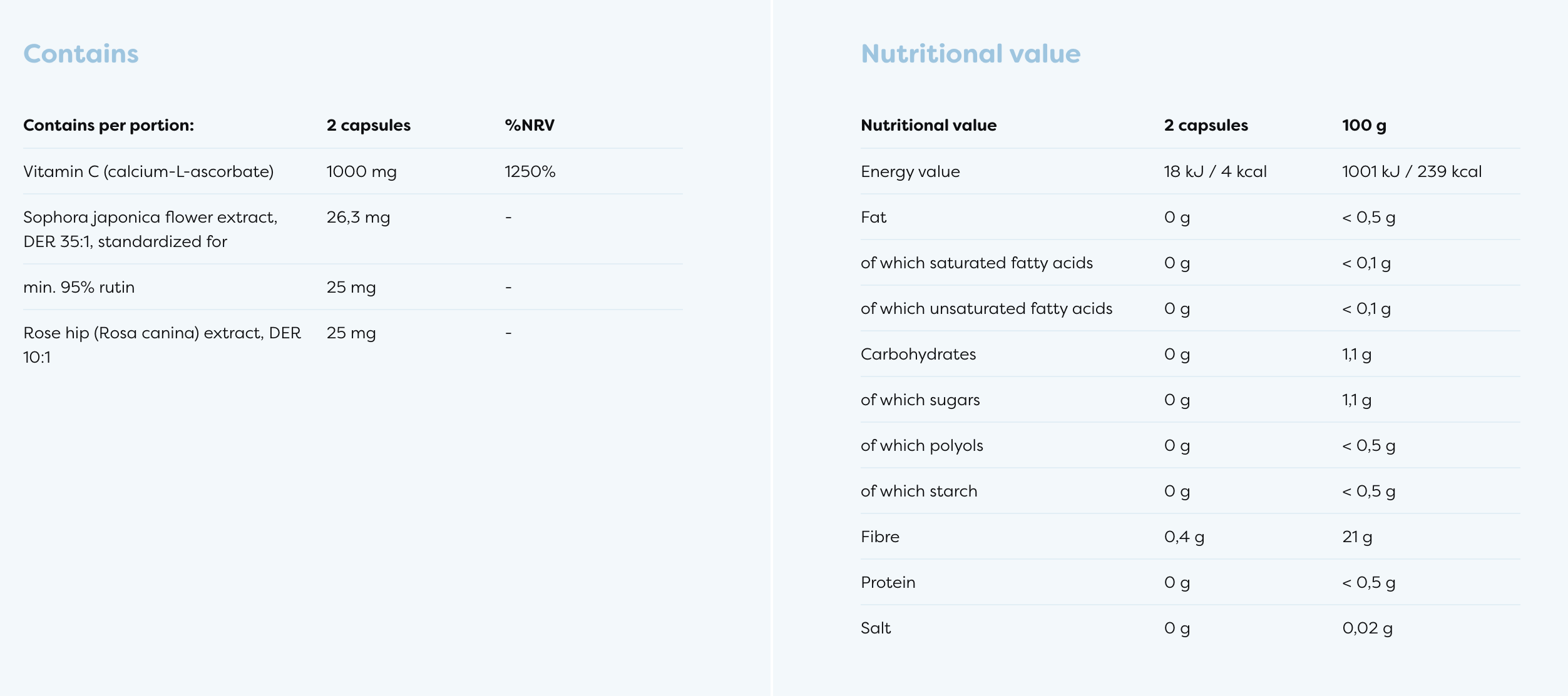 Ingredients: Vitamin C, Rutin, Rose Hip