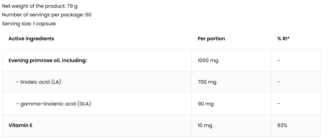 A source of evening primrose oil and vitamin E - One serving of dietary supplement provides the body with 1000 mg... Read more