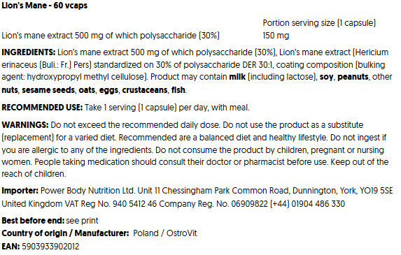 Ingredients: Lion's Mane Extract