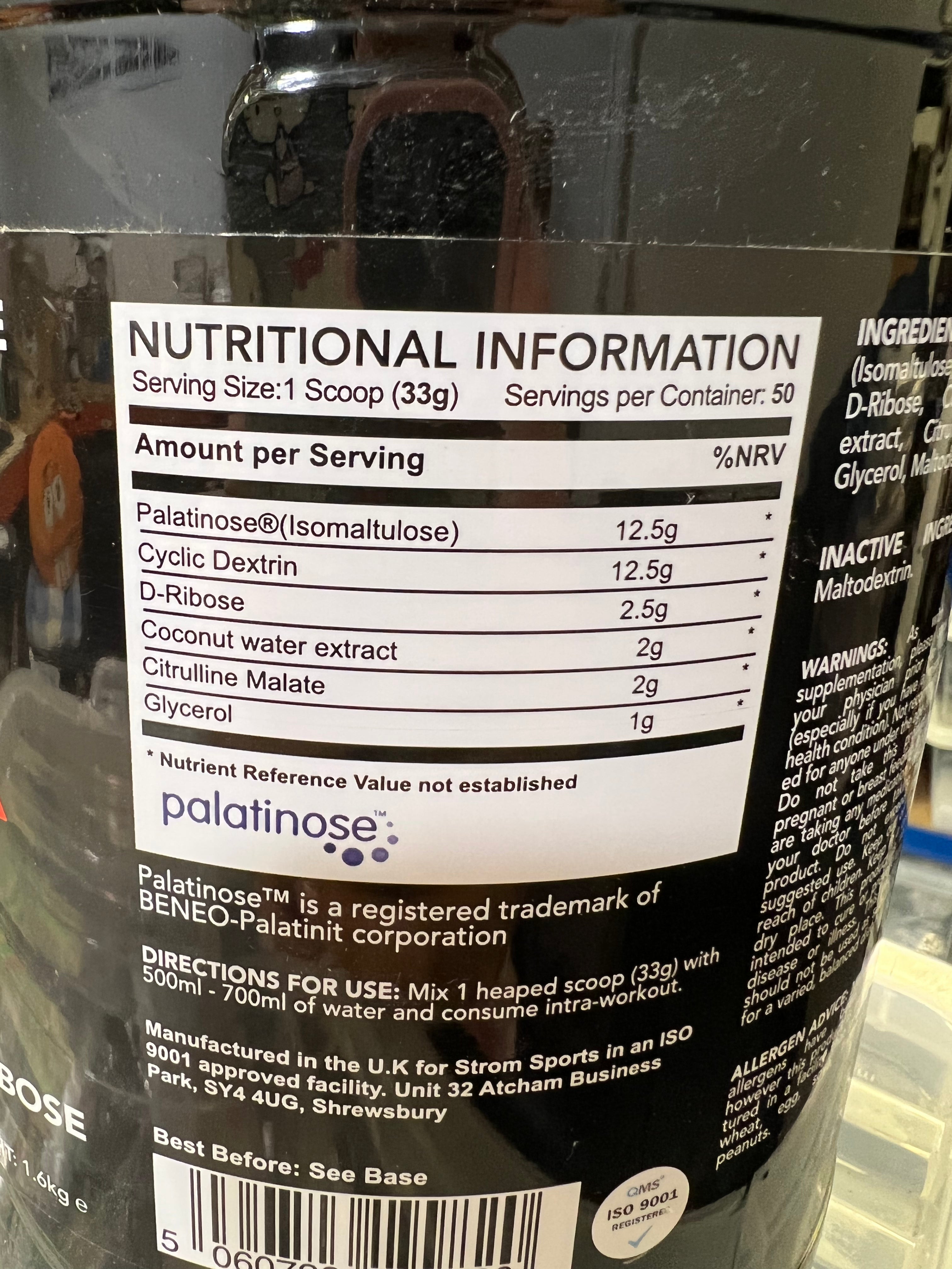 Ingredients: Sodium, Potassium, Magnesium, Calcium, Palatinose, Citrulline Malate, Glycerol Monostearate