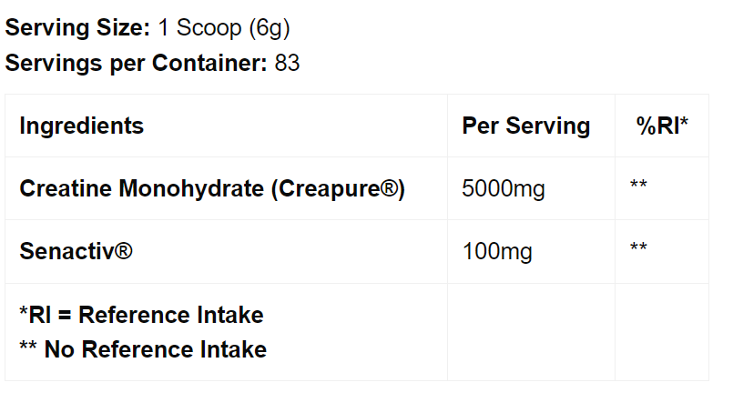 Ingredients: Creatine Monohydrate, Senactiv