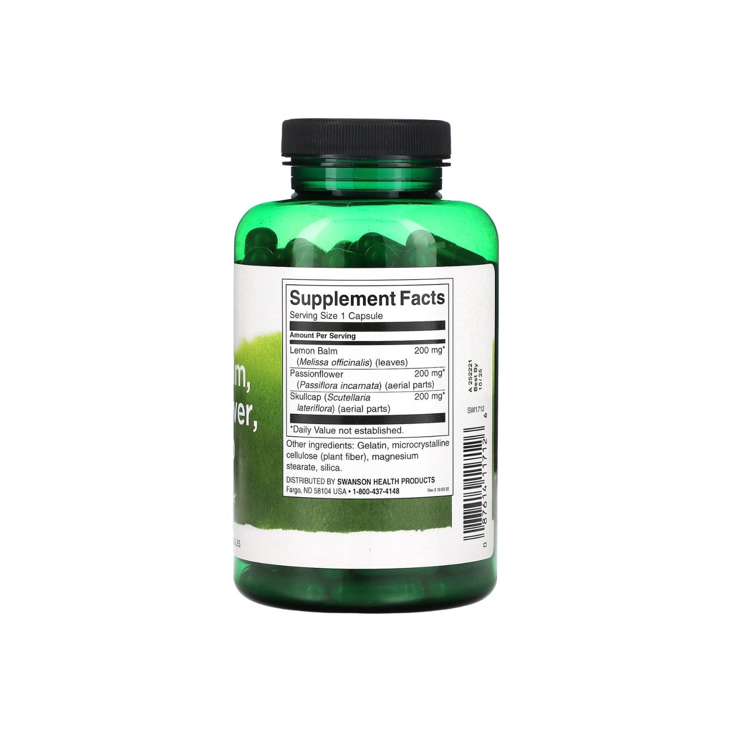 Swanson Lemon Balm Passionflower Skullcap Complex 180 Capsules